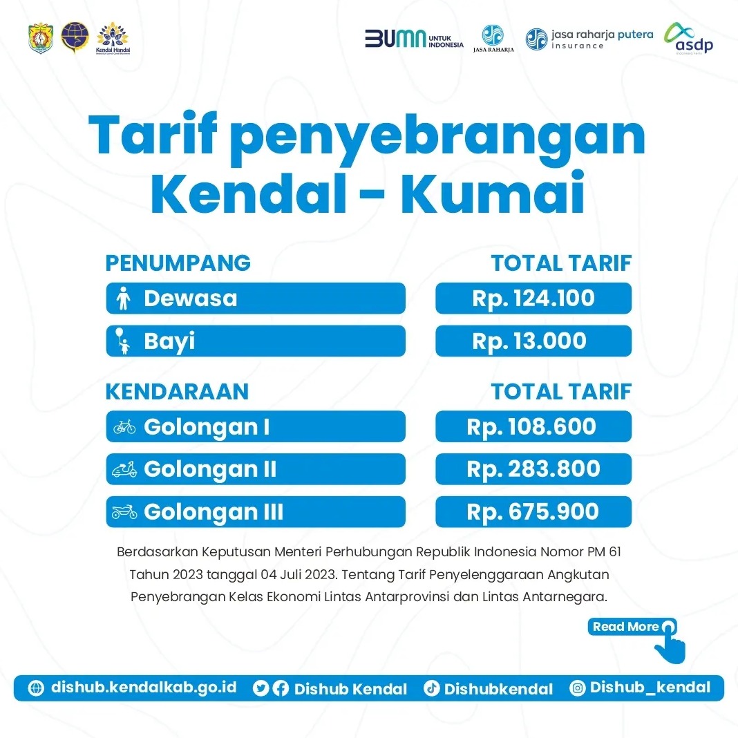 Read More Pengumuman INFORMASI HARGA/TARIF TIKET PENYEBERANGAN KMP KALIBODRI KENDAL - KUMAI INFORMASI HARGA/TARIF TIKET PENYEBERANGAN KMP KALIBODRI KENDAL - KUMAI